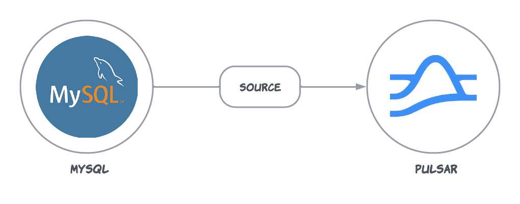 The MySQL source connector pulls messages from MySQL and persists the messages to Pulsar topics by using debezium.